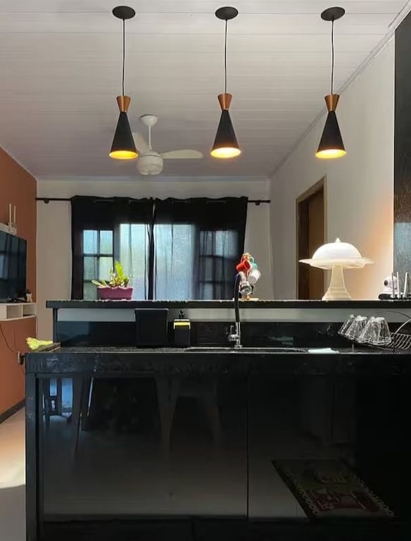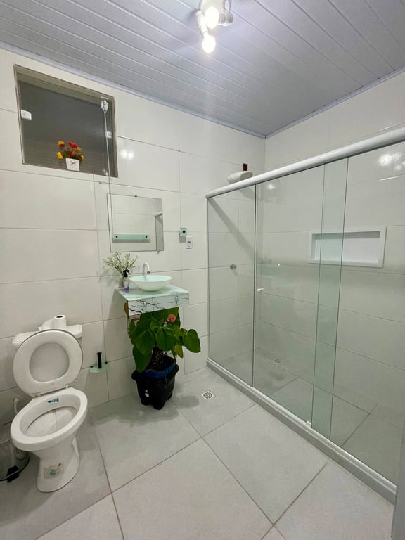 A casa possui um quintal nos fundos e tem um portão com acesso a minha casa ao lado, mas não utilizamos o quintal durante as hospedagens.